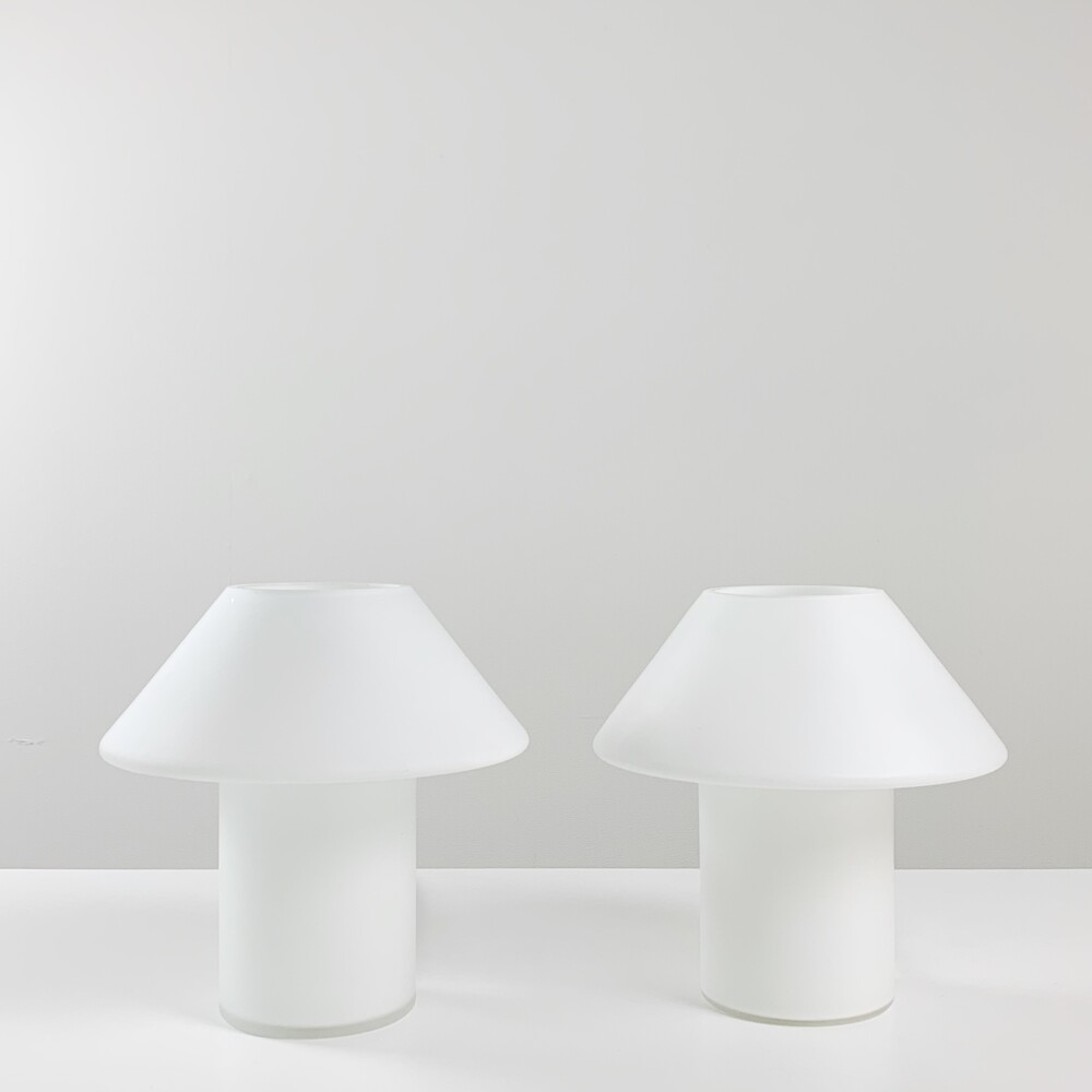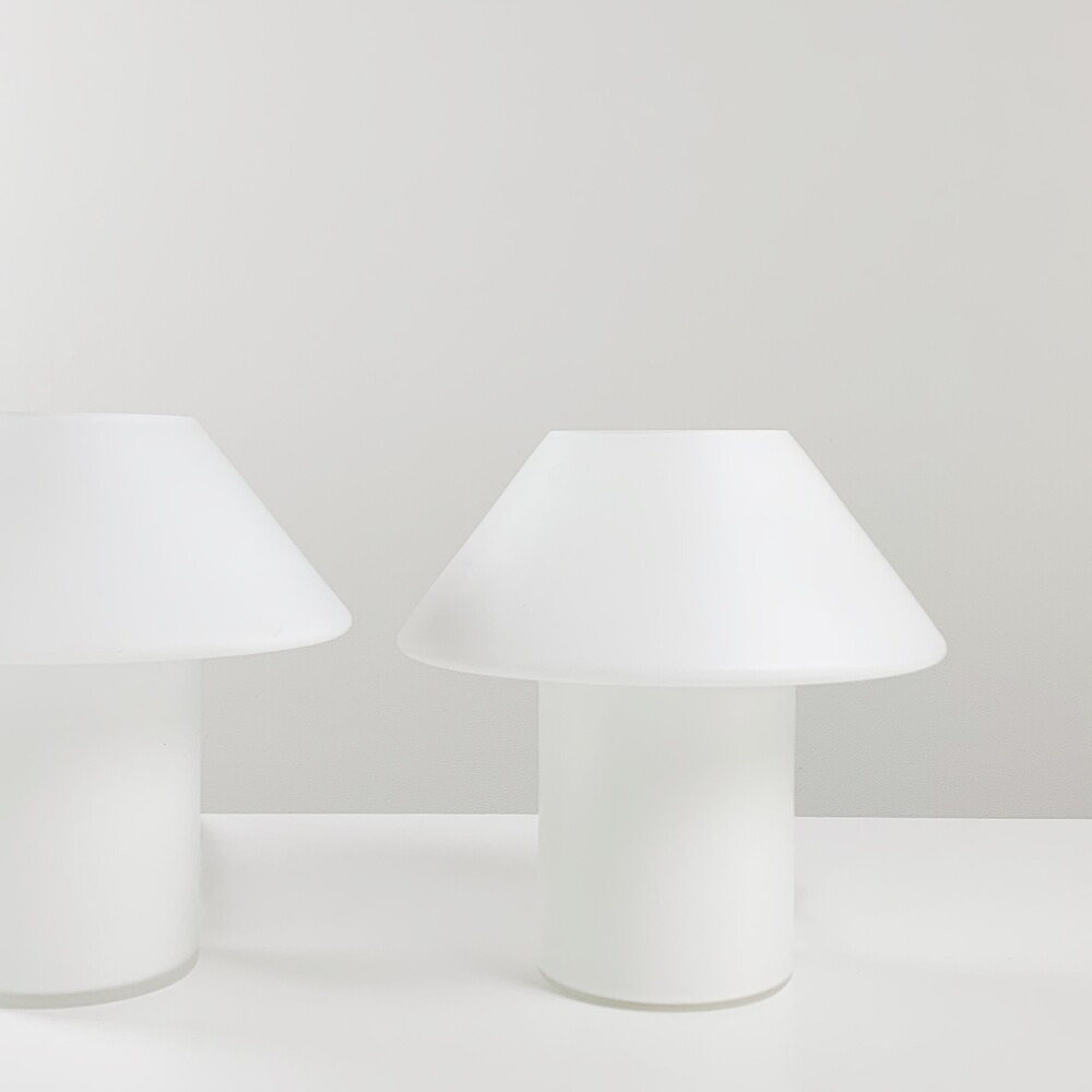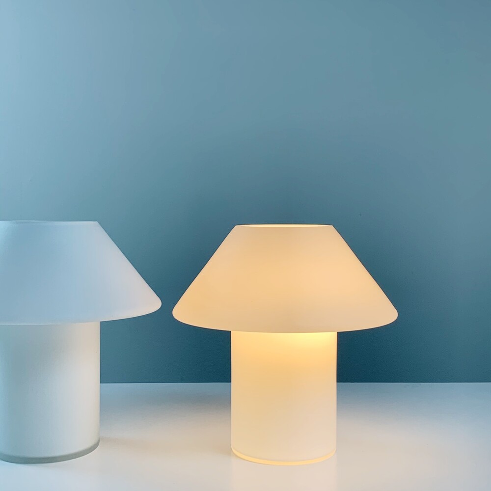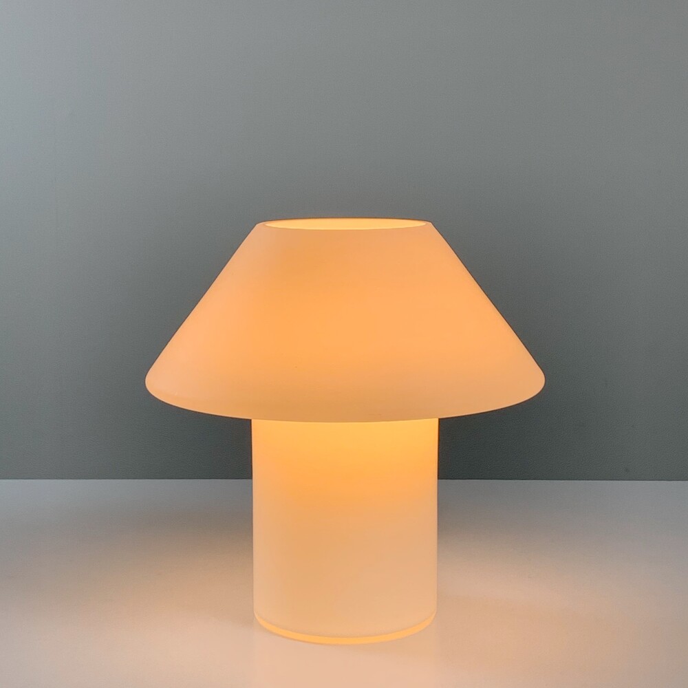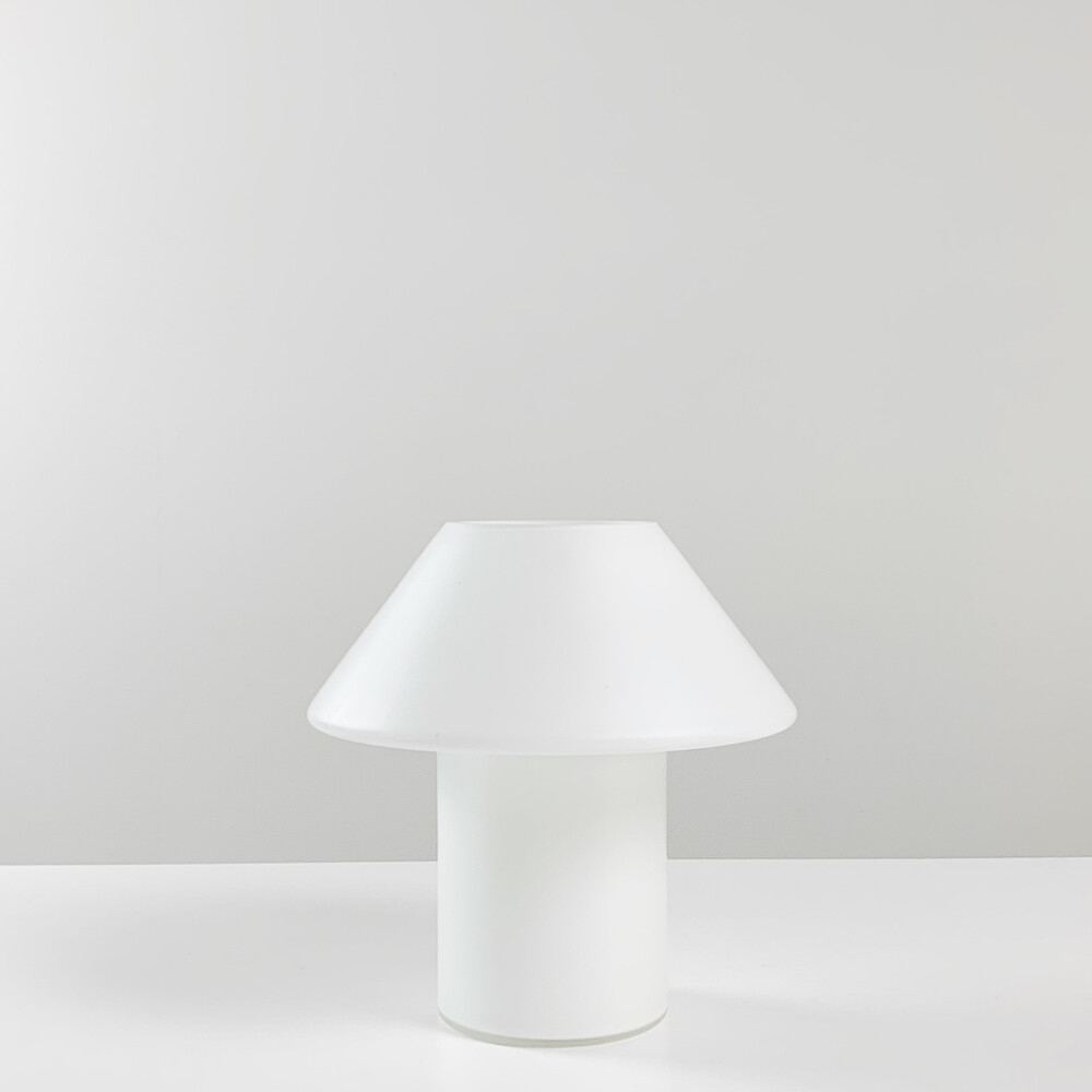 매트한 질감의 오팔린 글래스로 제작된 램프로,