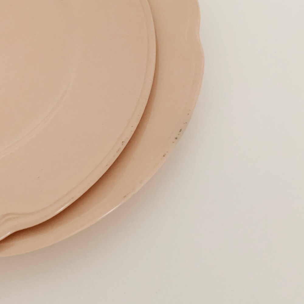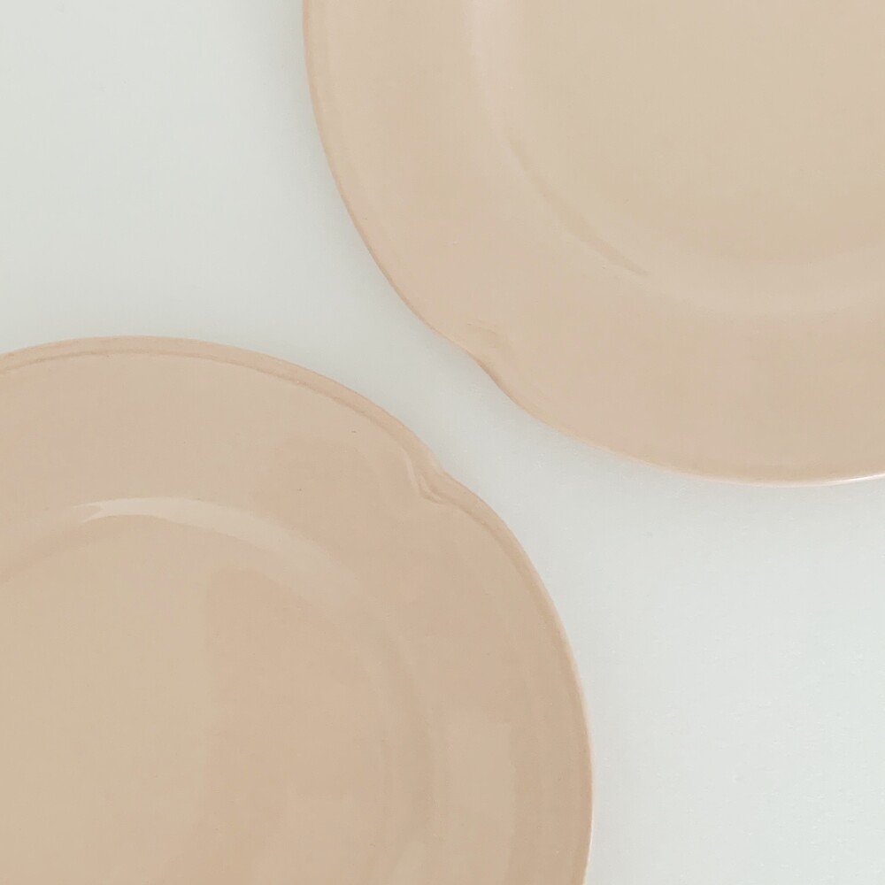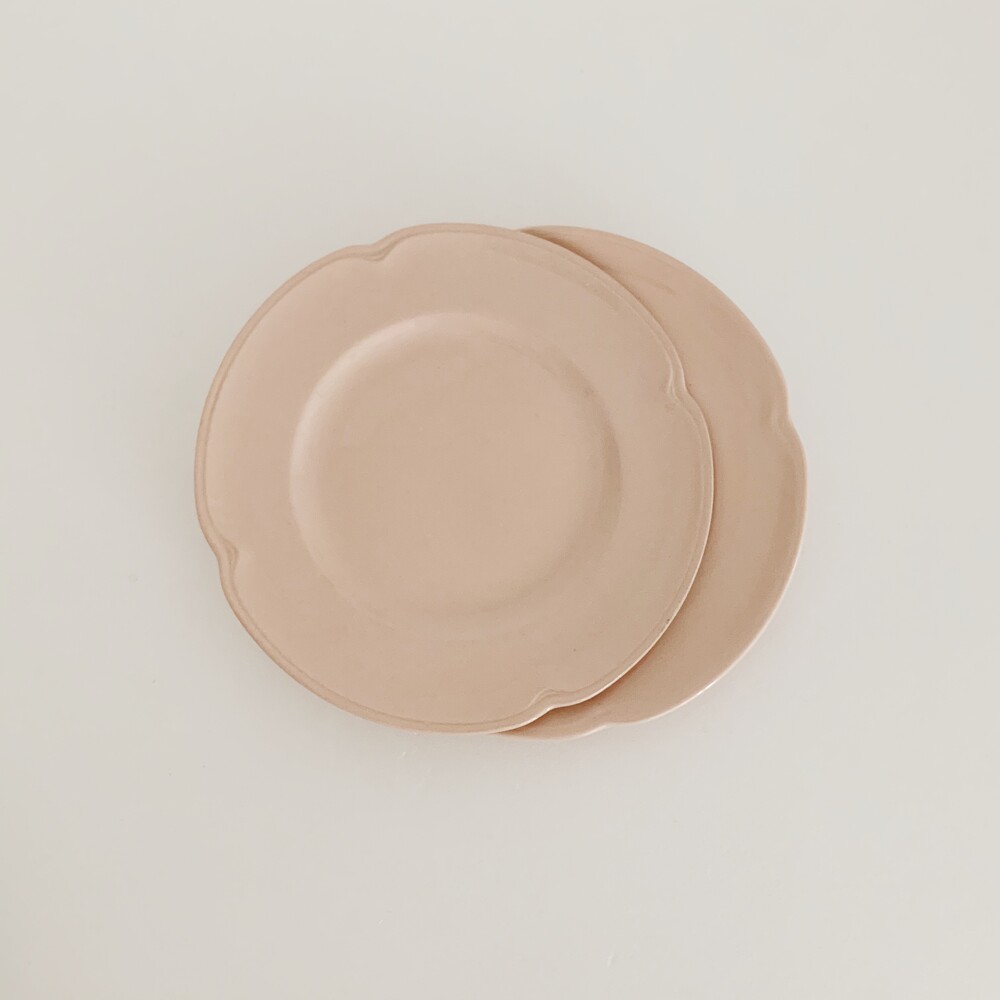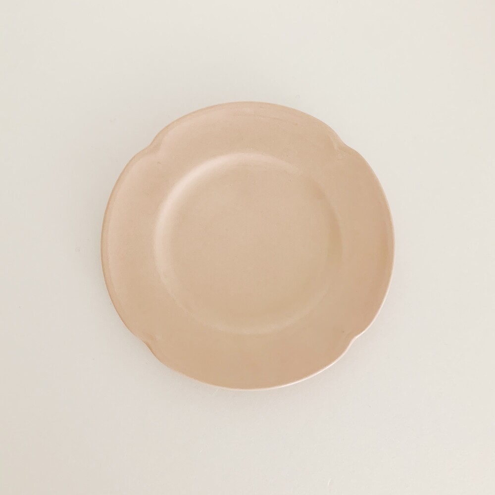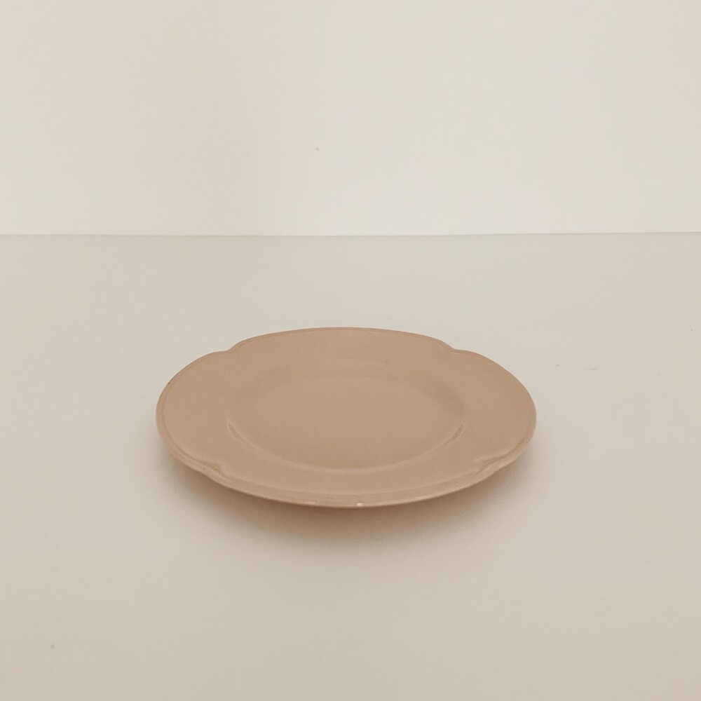톤다운된 옅은 핑크색의 접시로, 가장자리에 표현된