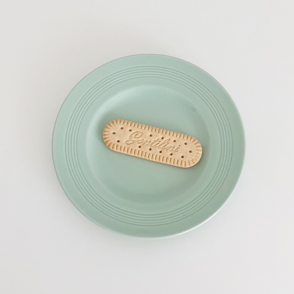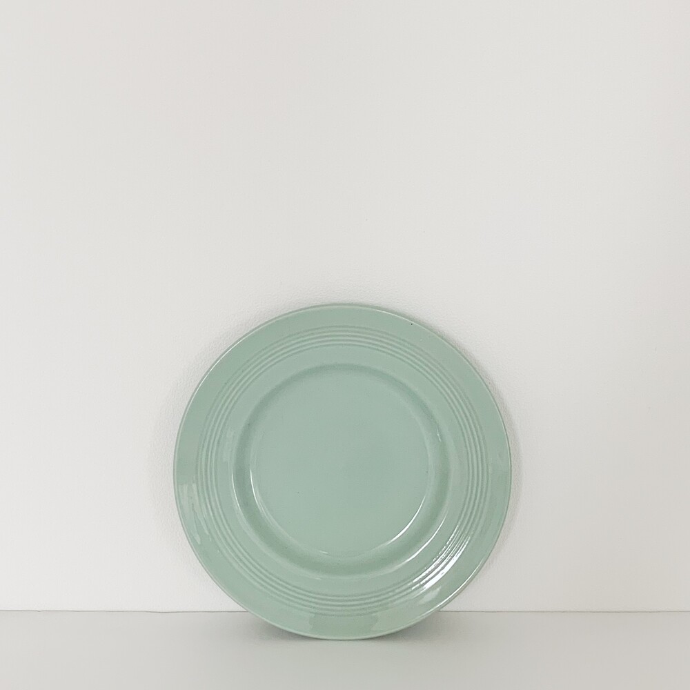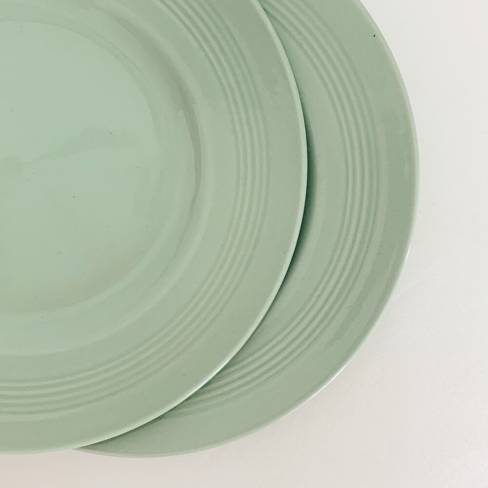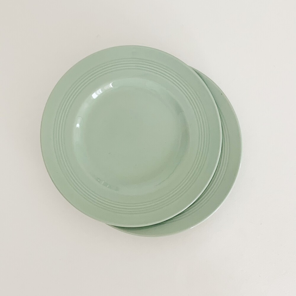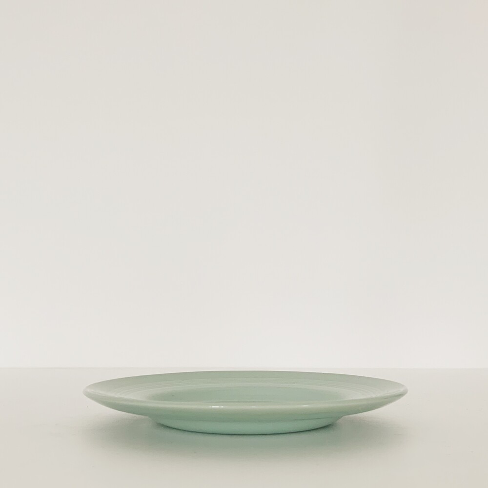 부드러운 에메랄드빛 접시와, 접시의 테두리를 따라