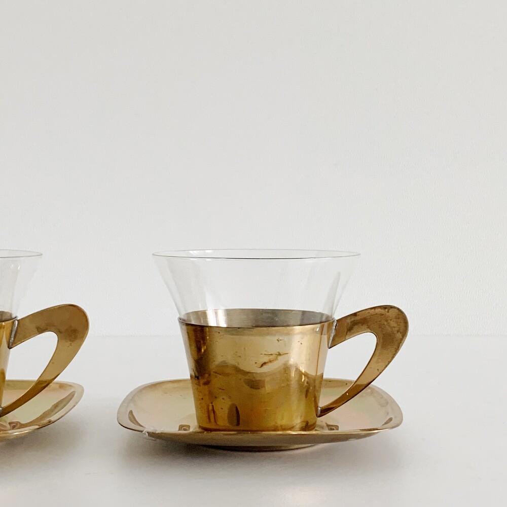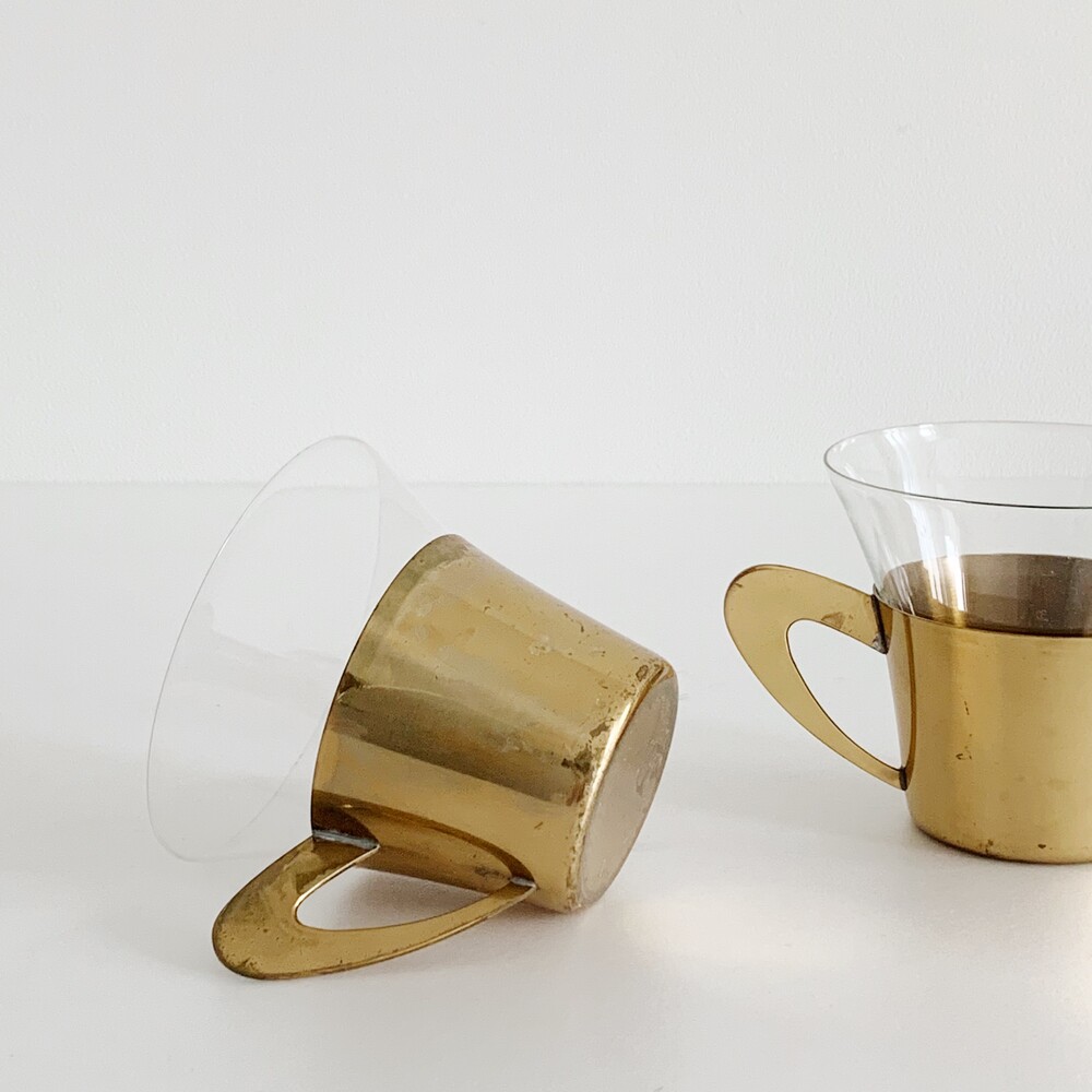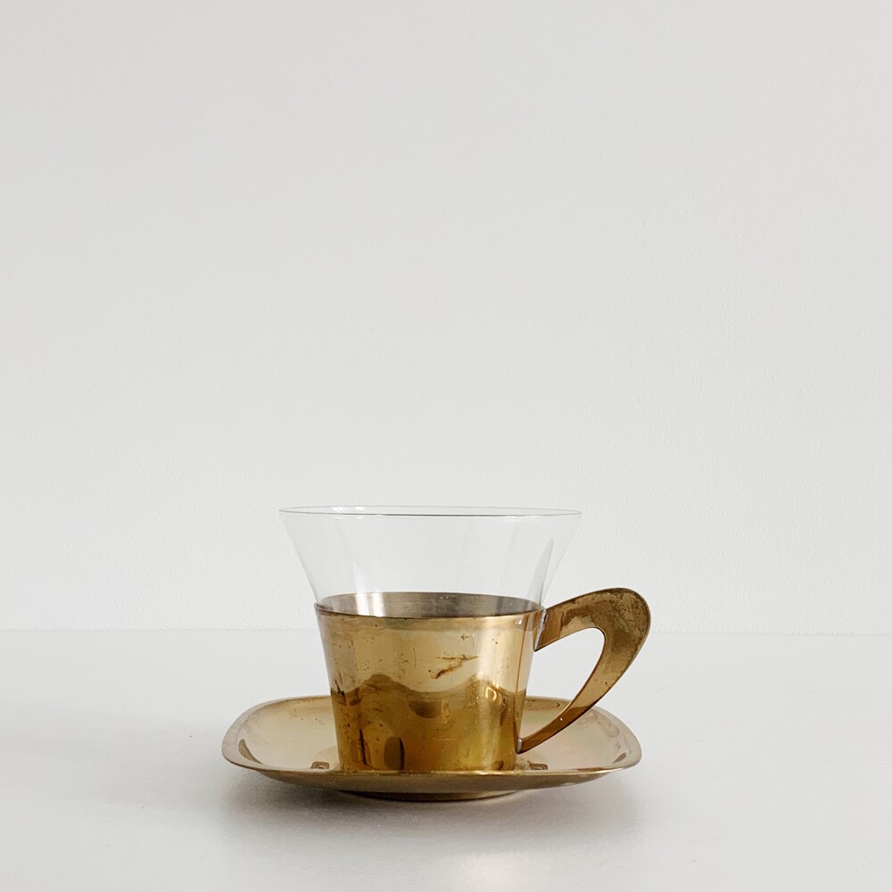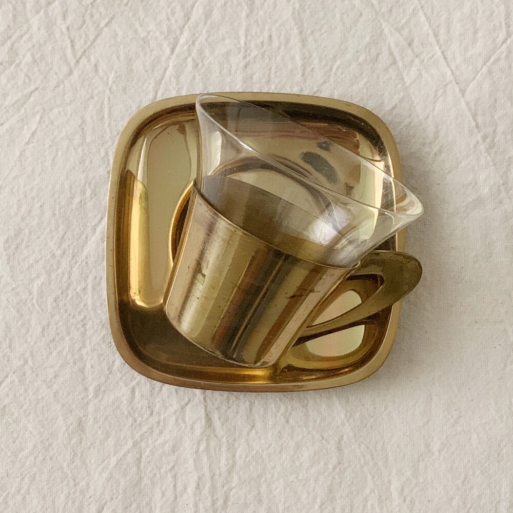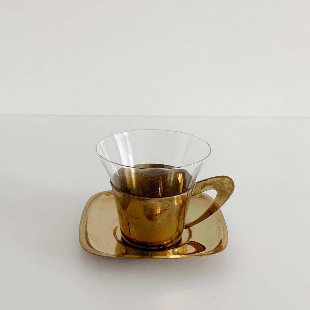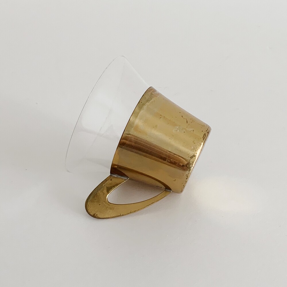 유리컵과 브라스 소재의 홀더 / 받침이 한 세트로 구성된 제품으로