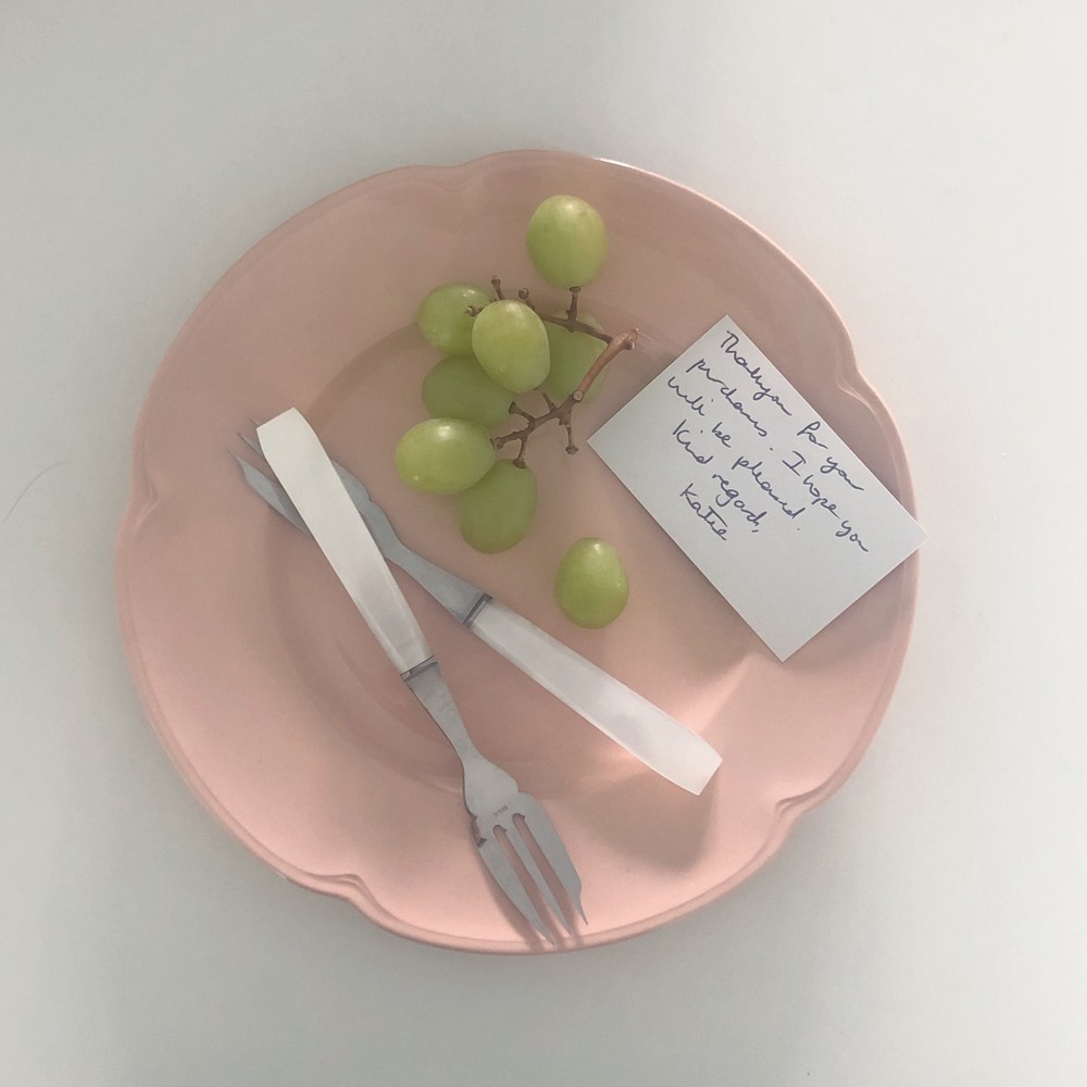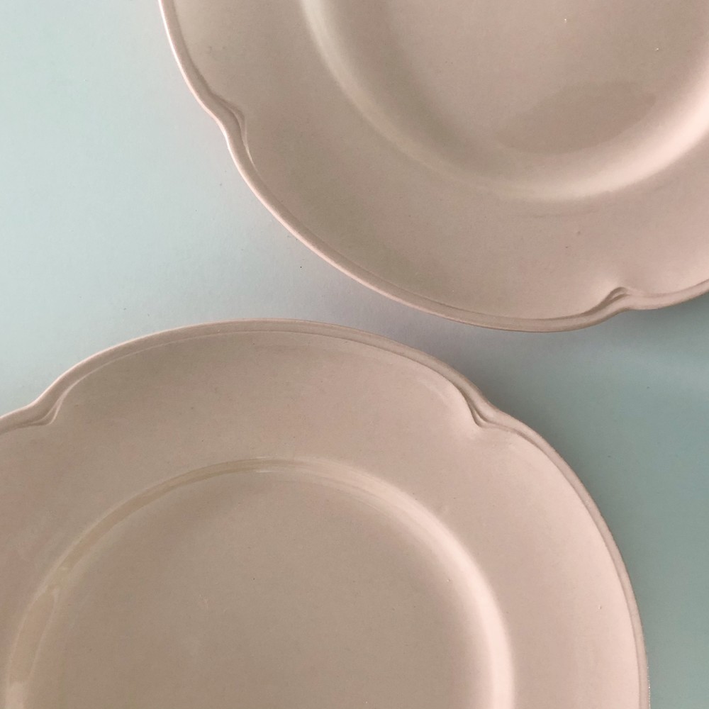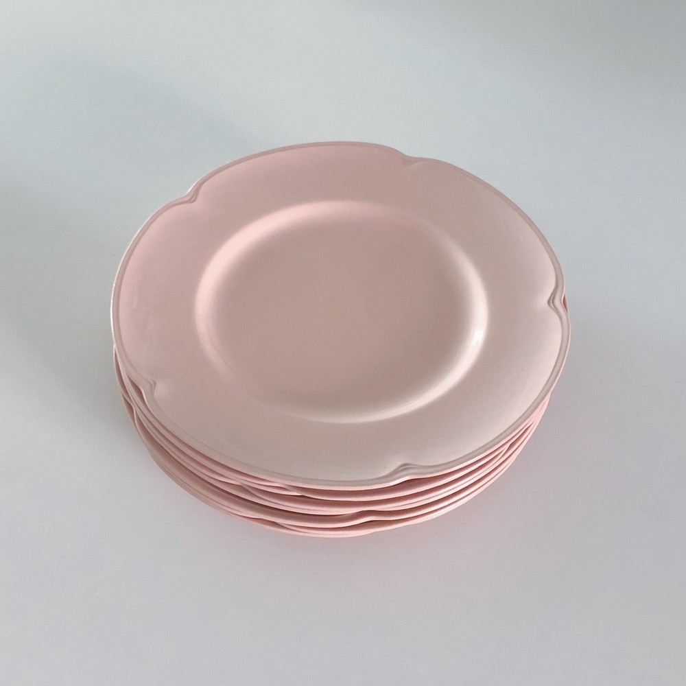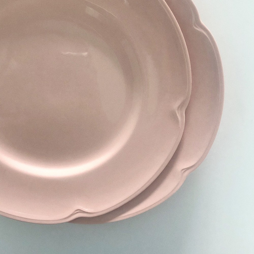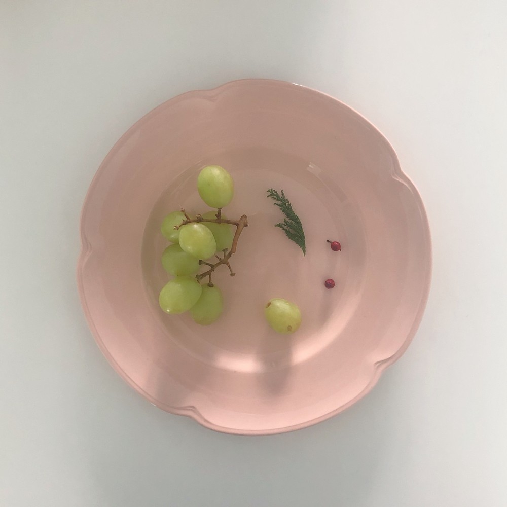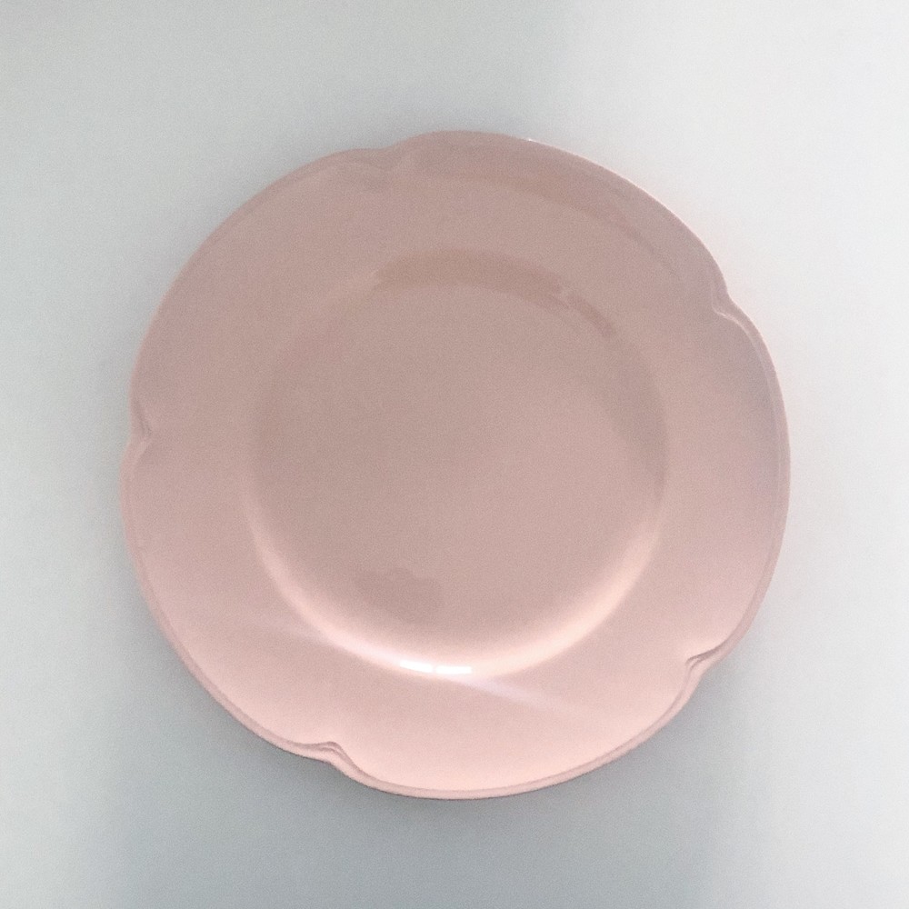 톤다운된 옅은 핑크색의 접시로, 가장자리에 표현된