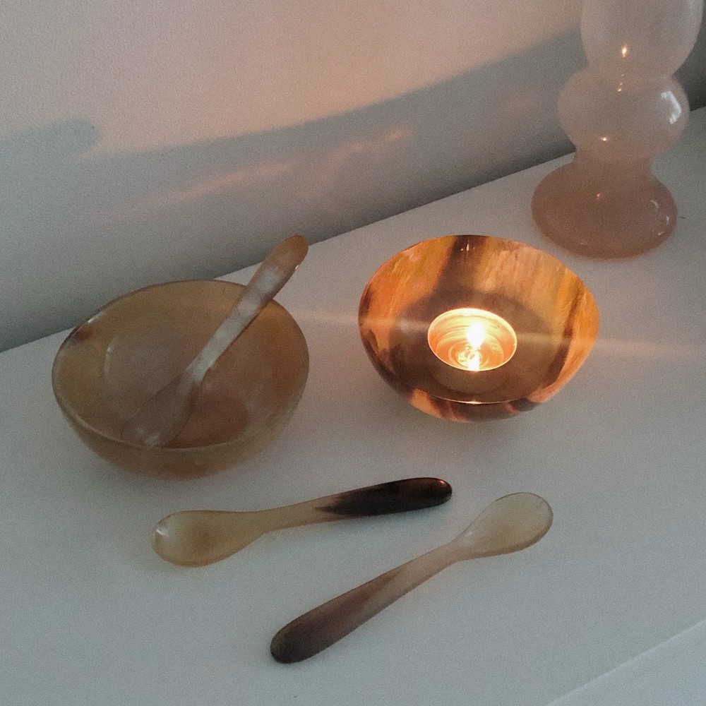 아담한 사이즈의 보울과 작은 스푼은, 천연의 horn소재를